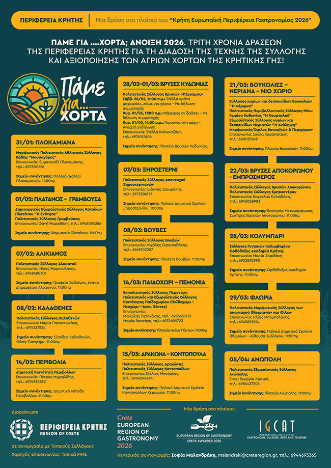 Η δράση εντάσσεται στο έργο “Κρήτη Ευρωπαϊκή Περιφέρεια Γαστρονομίας 2026”.