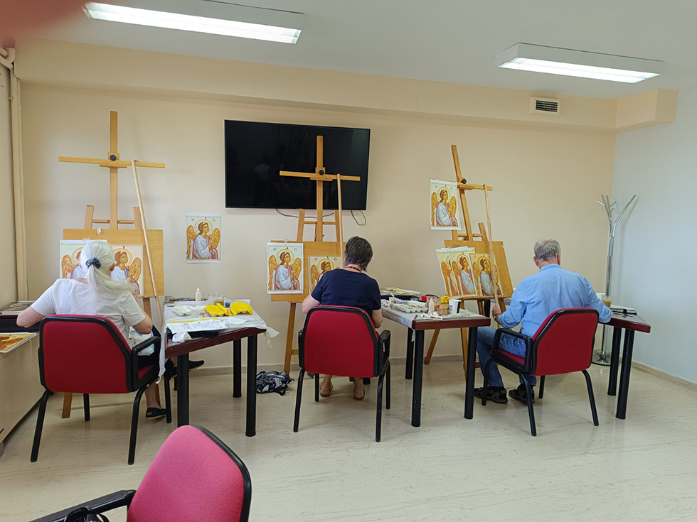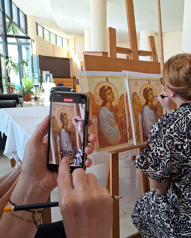 Με την έμπειρη καθοδήγηση της Αγιογράφου και επιστημονικής συνεργάτιδας της Ακαδημίας, κας Κωνσταντίνας Στεφανάκη, οι συμμετέχοντες εργάστηκαν με αφοσίωση και προσήλωση, δημιουργώντας τις εικόνες του «Αγγέλου Κυρίου» και της Παναγίας «Αγίας Ζώνης». Μέσα από αυτή τη διδακτική διαδικασία, γνώρισαν σε βάθος την Τέχνη της Βυζαντινής Αγιογραφίας και την πλούσια πνευματική της διάσταση.