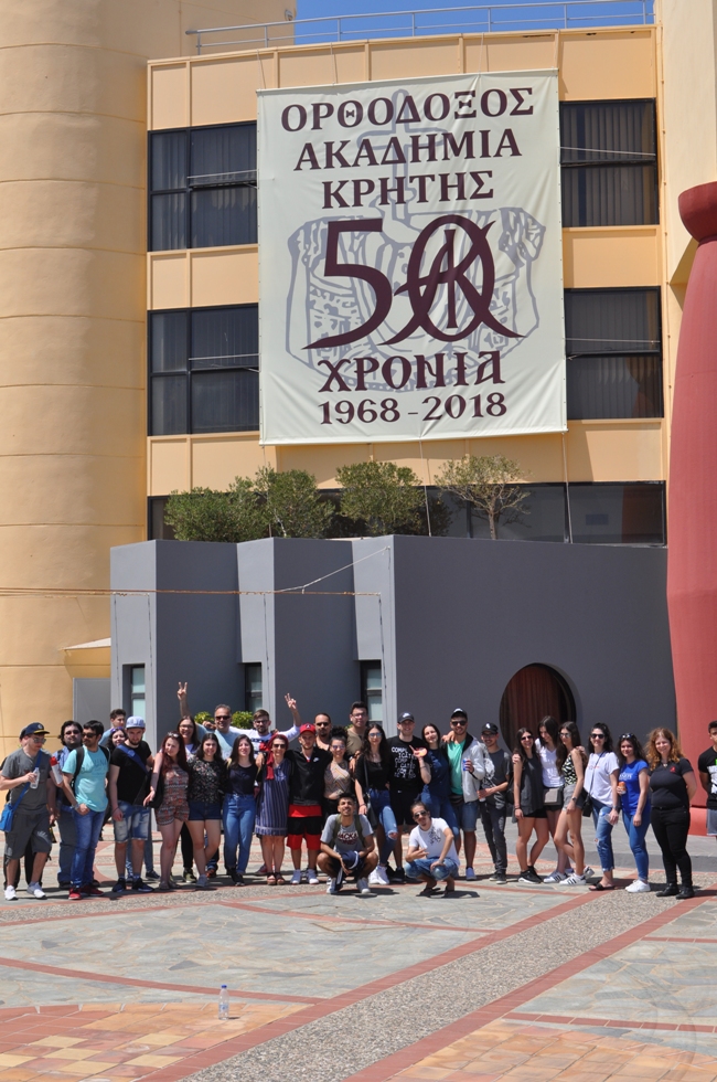 «Μία βόλτα στην ΟΑΚ» έκαναν 28 μαθητές της Γ΄ Λυκείου μαζί με τους καθηγητές τους, από το Ελληνικό Λύκειο Dortmund της Γερμανίας, την Παρασκευή 27 Απριλίου 2018, στην Ορθόδοξο Ακαδημία Κρήτης (ΟΑΚ). Η επίσκεψη των μαθητών είχε ως κύριο στόχο την ενημέρωση σχετικά με τις δύο μεγάλες μορφές της Κρήτης, τον Δομήνικο Θεοτοκόπουλο και τον Νίκο Καζαντζάκη, αλλά και τη γενικότερη γνωριμία με το Ίδρυμα.